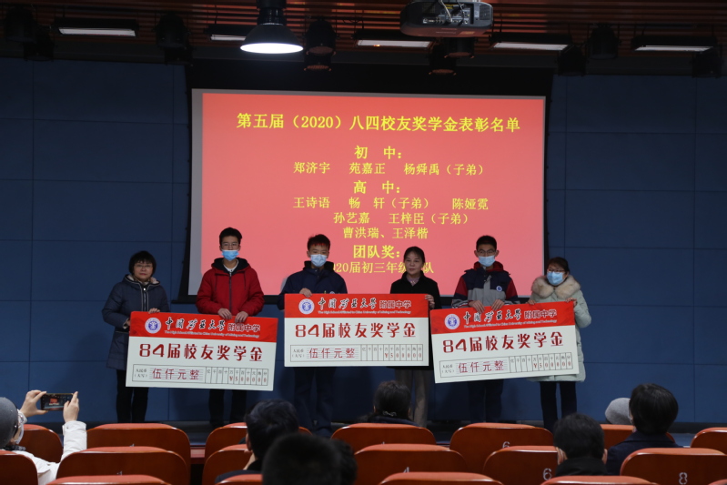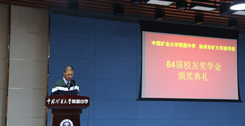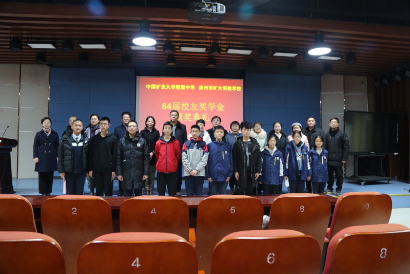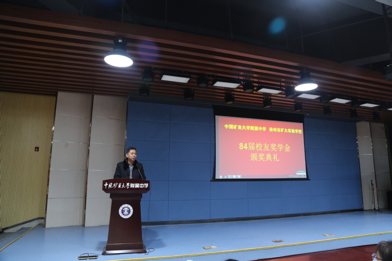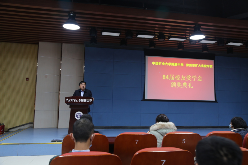 1月25日下午,我校在讲习堂隆重举行了第五届“84届校友奖学金”颁奖典礼。因疫情原因,7位在徐州市的84届校友代表出席颁奖典礼;居培明董事长等十余位矿大附中84届校友通过视频会议的形式出席了颁奖典礼。84届校友的足迹遍布自全国各地,有著名企业家、医生、清华北大校友,还有驻足本校、为母校贡献的矿大教授、矿附教师等。我校校长王健鹏、副校长张诚、黄永乔、武昌、赵祥伟和有关职能部门人员以及初三、高一年级获奖学生参加了典礼。颁奖典礼由黄永乔副校长主持。