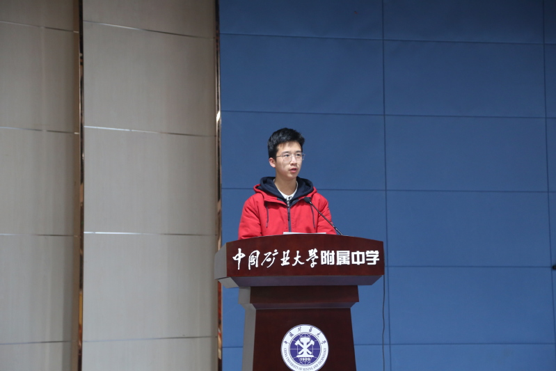 学生代表畅轩、杨舜禹分别上台发言,感谢84届校友的激励和老师们辛勤的教育,并汇报了自己的学习情况。征途漫漫,惟有奋斗。现在,青春是用来奋斗的;将来,青春是用来回忆的。请八四届校友和老师们放心,他们一定努力奋斗,刻苦学习,为青春添彩,为矿附争光,以梦为马,不负韶华,为矿大附中再创辉煌!